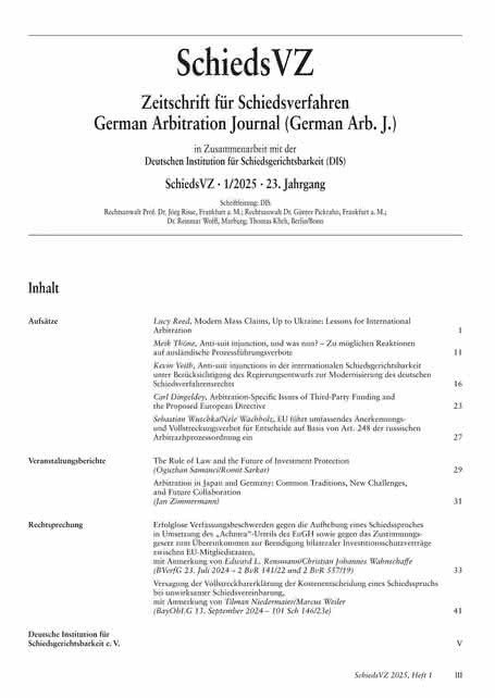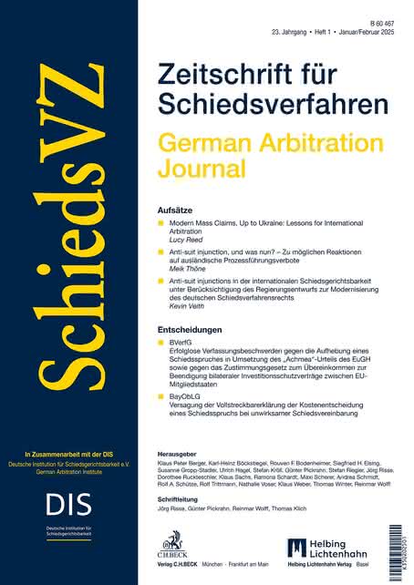 Here you will find the preview of SchiedsVZ, issue 1/2025. The DIS and Verlag C. H. Beck are co-publishers of the German Arbitration Journal (SchiedsVZ). By the way, the subscription to the German Arbitration Journal is free of charge for DIS members.