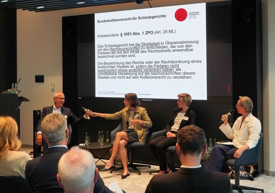 After a welcoming address by Ramona Schardt and Reinmar Wolff, the regional coordinators Annekathrin Schmoll (Gibson Dunn) and Moritz Schmitt (rothorn legal) welcomed the speakers and guests which was followed by an entertaining introduction to the topic by Thomas Pfeiffer (University of Heidelberg). Sabrina Streicher (BASF), Stephanie Pfisterer (Homburger) and Anna Masser (A&O Shearman) then discussed possible procedural (and substantive) solutions under German and Swiss law with the engaged audience.