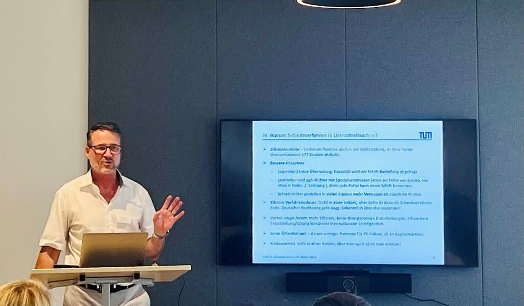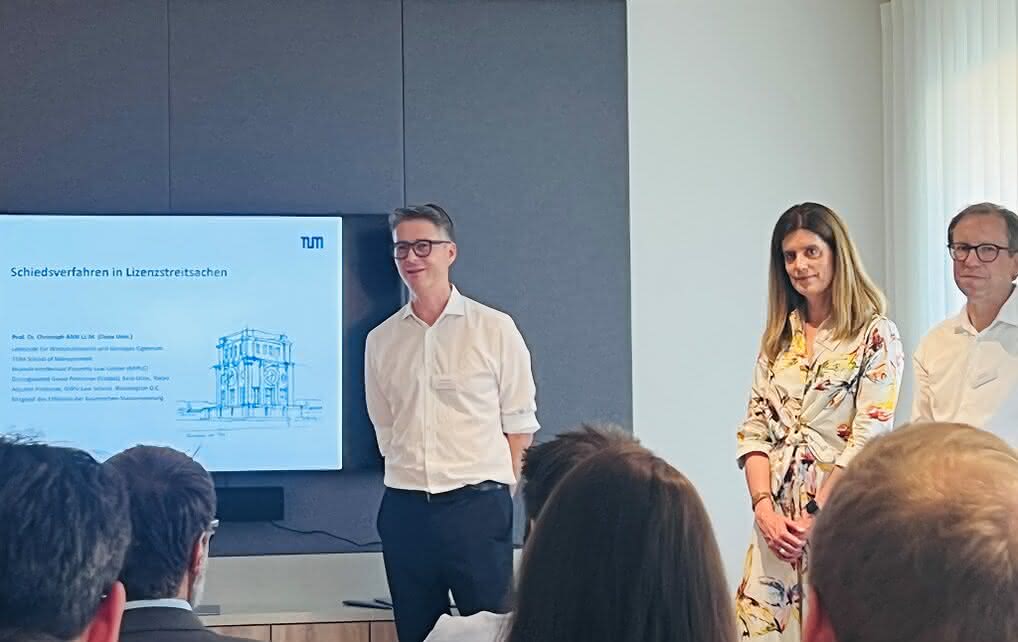 Special thanks go to Ramona Schardt, for her introductory remarks and to Christoph Ann (TUM School of Management and MIPLC), whose keynote speech on ‘License to Arbitrate – Schiedsverfahren in Lizenzstreitsachen’ laid the ground for an evening full of stimulating discussions. We would also like to thank the numerous participants from the judiciary, the legal profession and companies for coming, for the lively discussions, especially on the question of the arbitrability of patents, and for the extensive dialogue that followed.