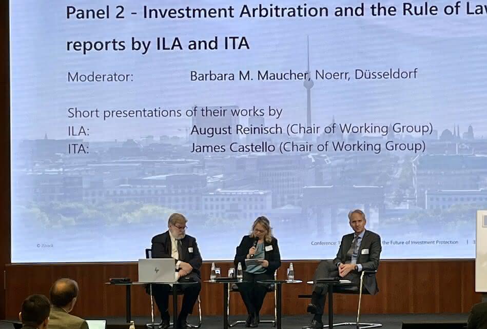 Barbara M. Maucher (Noerr) led the second panel, “Investment Arbitration and the Rule of Law”, where August Reinisch (ILA) and James Castello (ITA) presented their work on rule of law principles in arbitration, sparking dialogue on reform ideas.