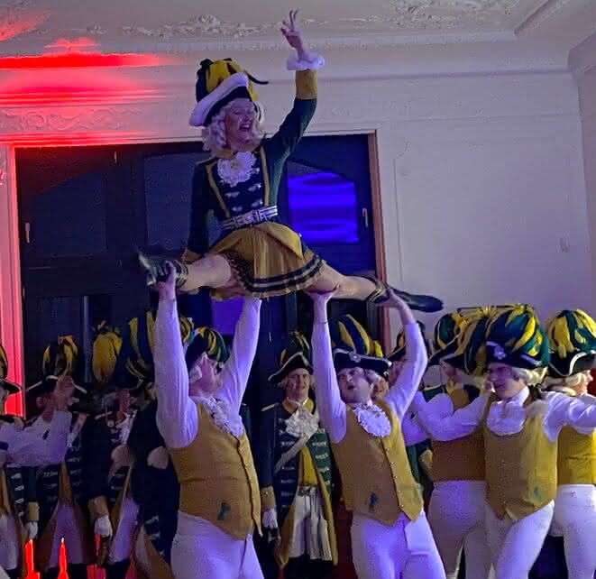 A special highlight was the visit of the Kölner Ehrengarde (Cologne Guard of Honour), who delighted us this year with an impressive music band and an energetic dance group. With lively melodies and spectacular dancing, the Kölner Ehrengarde transformed our villa into a party full of joie de vivre. One of the highlights of the evening was the presentation of the honorary title of 'Lieutenant of the Kölner Ehrengarde' to Secretary General Ramona Schardt - a very special honour!