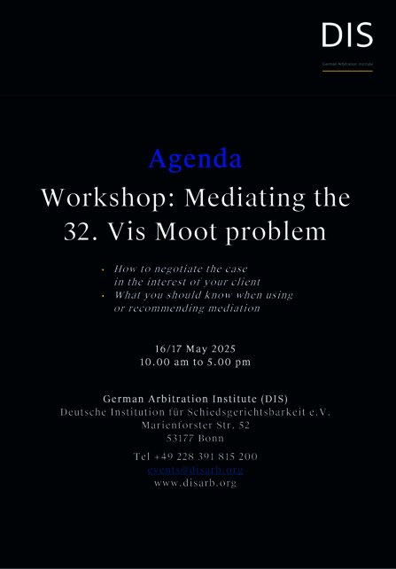 In a two-day seminar on 16/17 May at the DIS’ Bonn premises, the Vis Moot Court case will be examined with a look at its economic angles and its potential for amicable settlement.