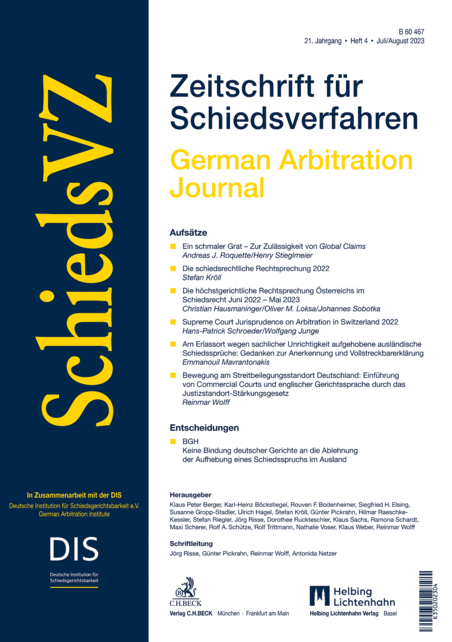 We are pleased to announce that issue 4/23 of the SchiedsVZ has just been published with the following articles: