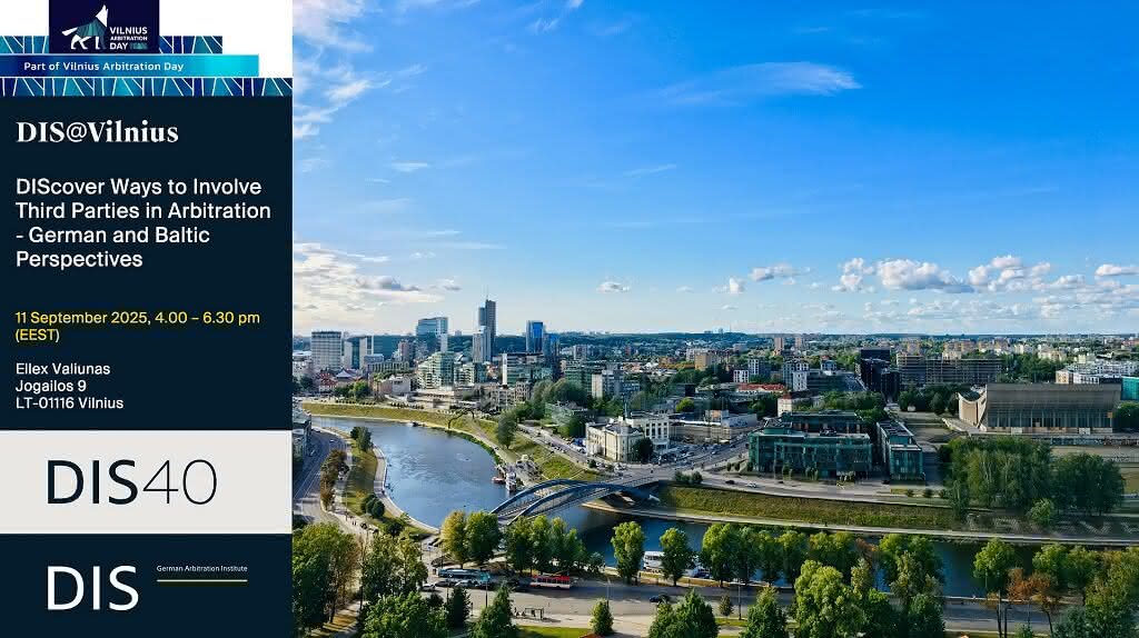 The DIS is coming to Vilnius for an event entitled "Ways to Involve Third Parties in Arbitration with a focus on German and Baltic Perspectives."